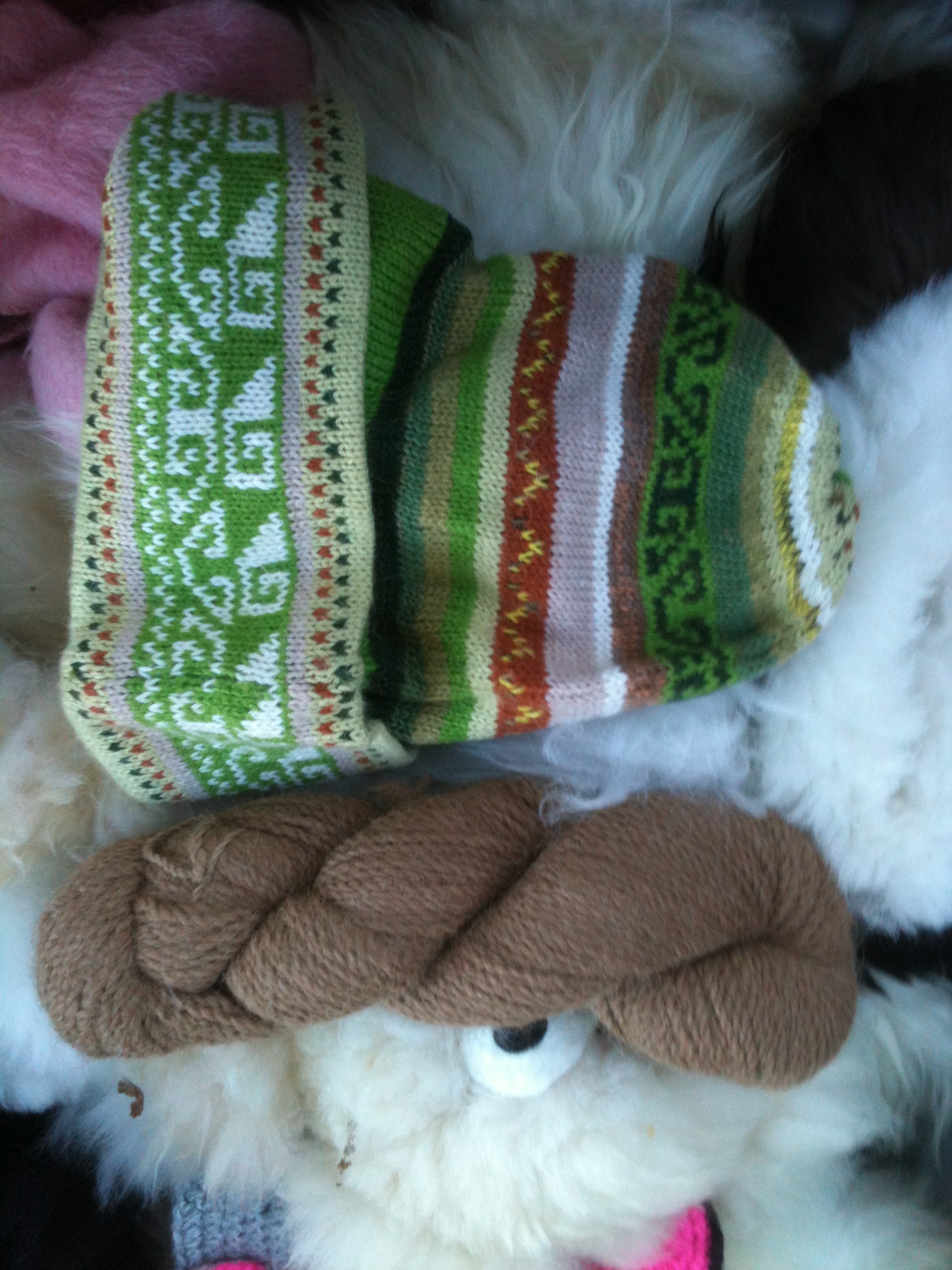 He was in the middle of resorting the store when I arrived, but if you look carefully the machinery to process the alpaca wool is under the boxes of raw material.