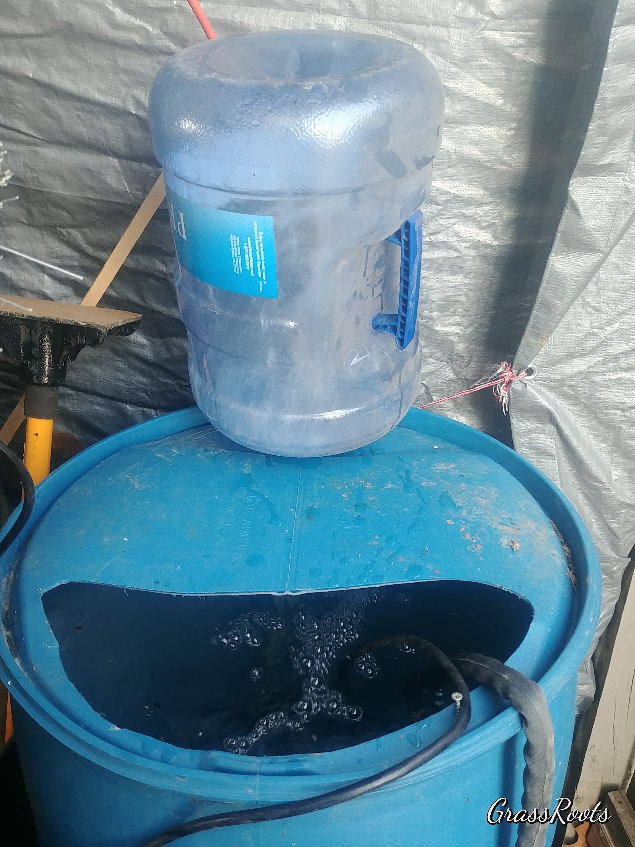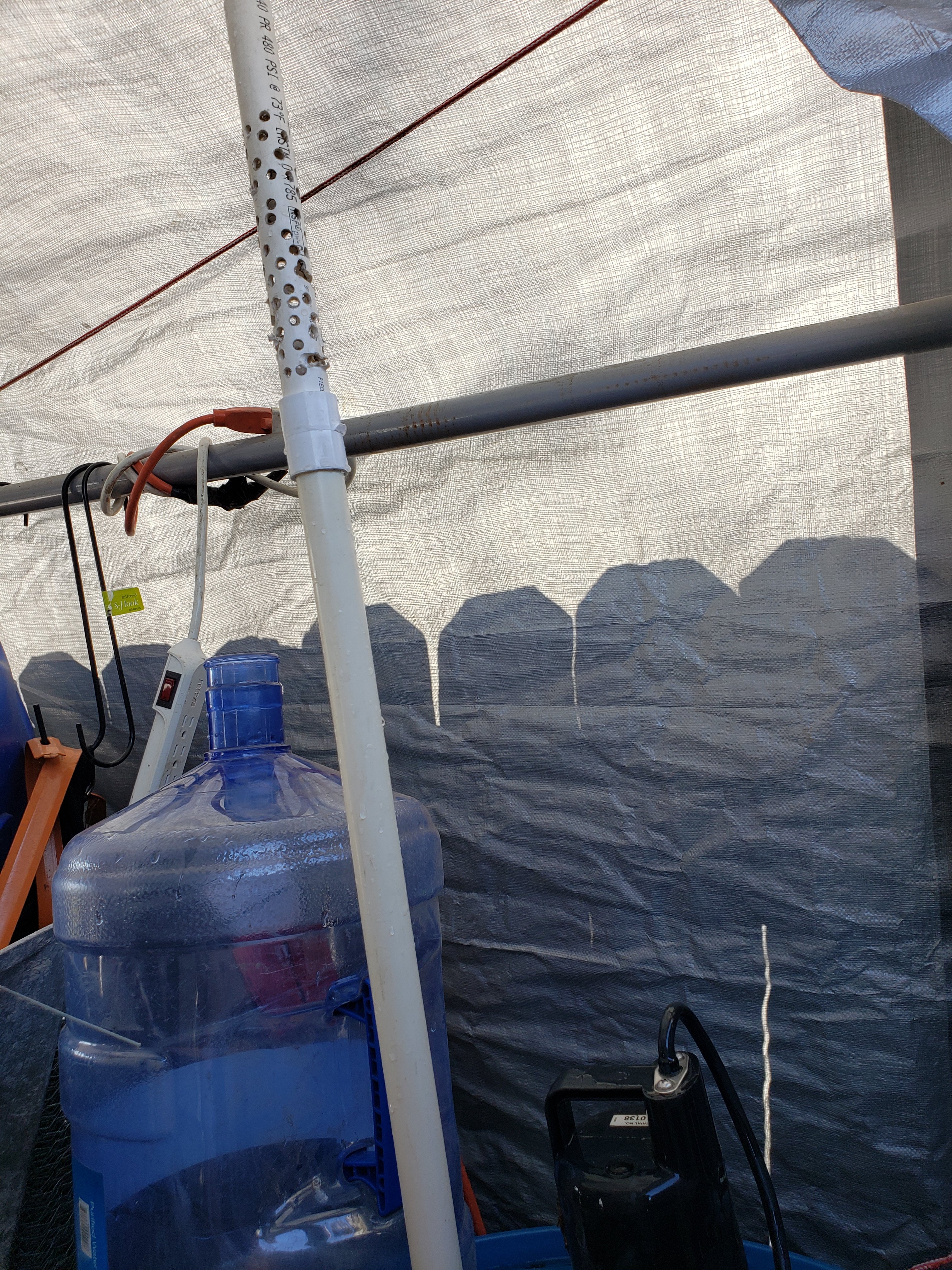 I had to do some modifications on the system when I switched to a bigger pump. There was so much water flow it filled the top jug very rapidly. I had to drill some holes in the pipe to slow it down. For the sake of aeration, the holes were drilled near the top. It took quite a lot of them.