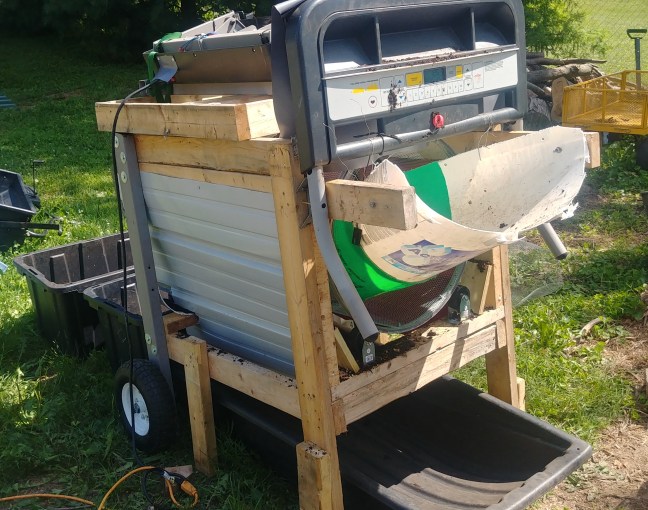I came across a free treadmill on Craigs List and thought it would work well for a sifter. I seperated most of the frame and mounted the motor and control board on a 2x4 frame, then hooked the motor to a cyndrical screen with a rubber belt. The sifting screens are interchangable for different sizes … Continue reading Trommel is operational!